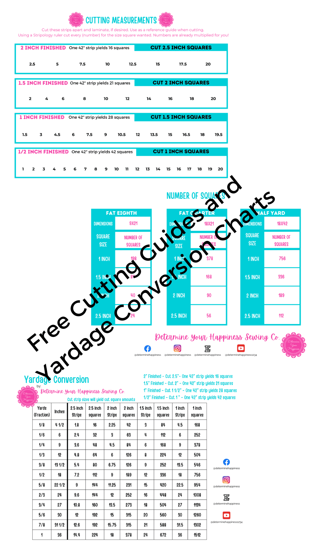 When precision matters, you can rely on the cutting guide cheat sheets. Whether you need to cut by 2.5" or 1.5", or calculate yardage amounts, strips, or squares, these free charts have got you covered.